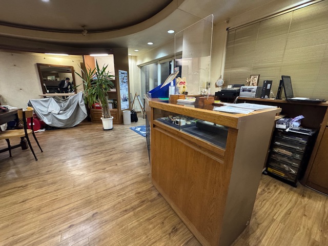 現況はセット4面、シャンプー2台のレイアウトですが、広いウエイティングスペースをはじめ、セット面も控室もゆとりあり。 ...続く
