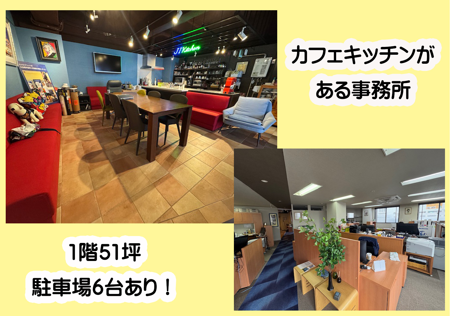譲渡無し!東区の厨房・カフェスペースがある事務所跡。51坪でP6台。