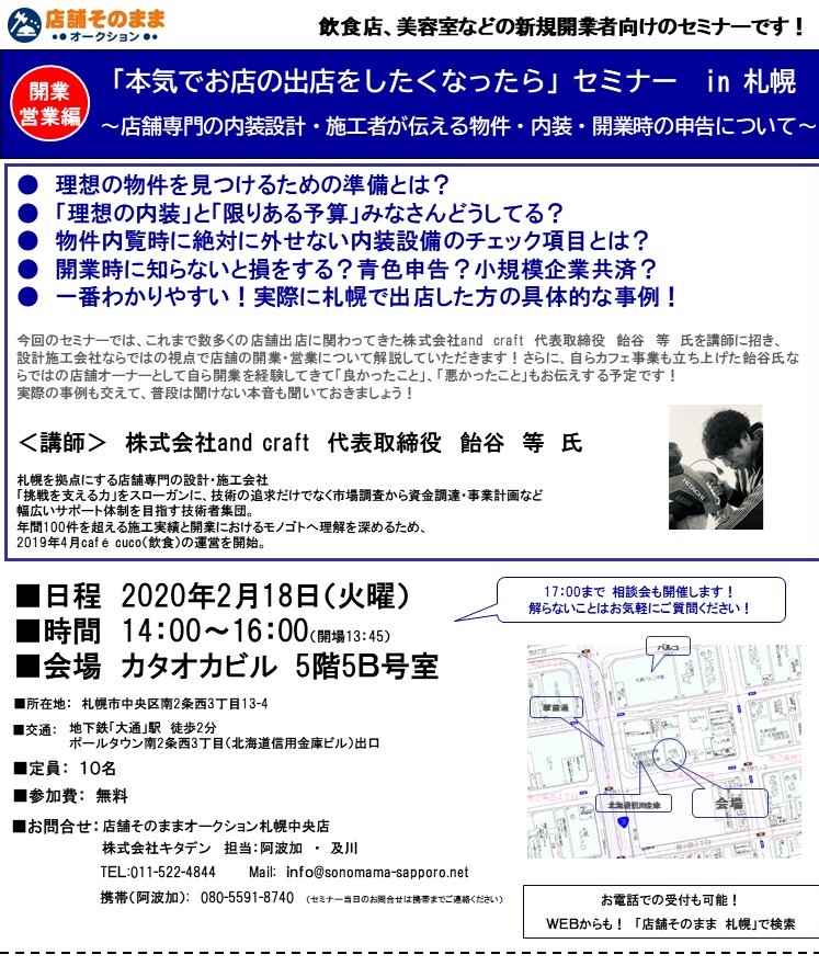 昨年開催した「本気でお店の出店をしたくなったら」セミナーが大好評につき、第2段の開催が決定しました!