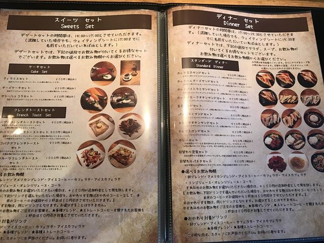 モーニングセット、ランチセット、スイーツセット、ディナーセットとどの時間帯に
