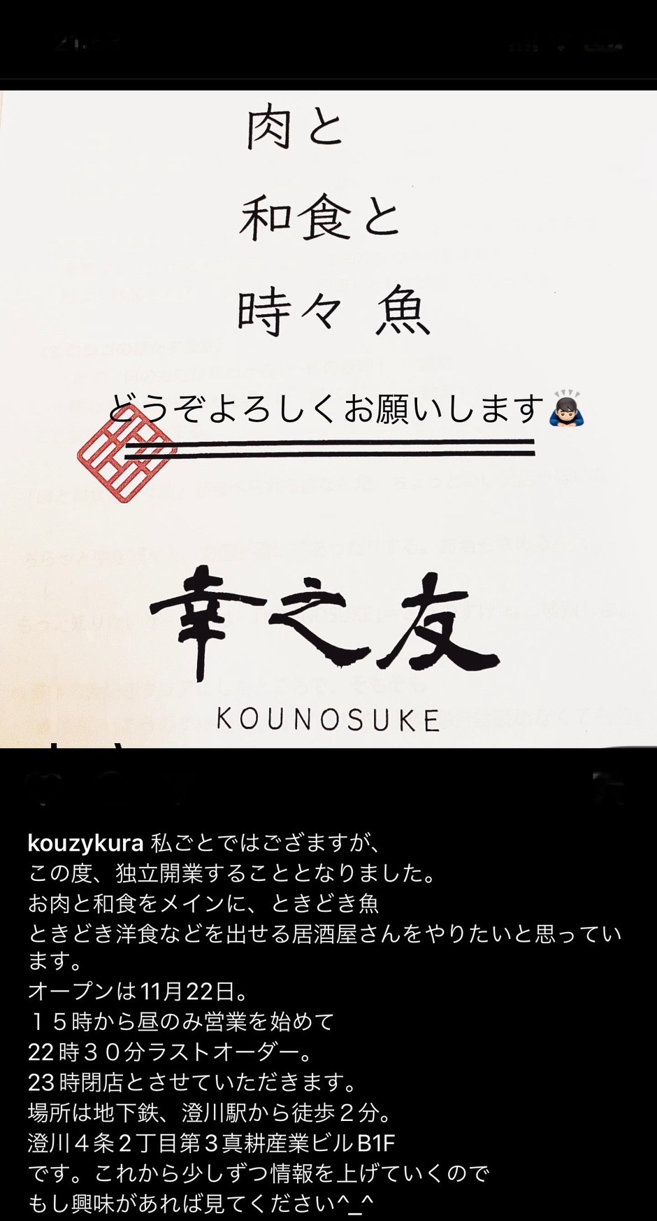 「肉と和食と時々魚 幸之友」さんがOPENしました!