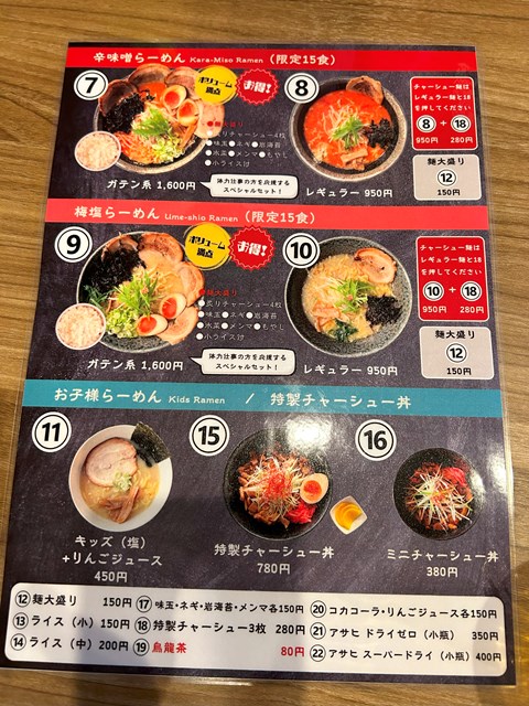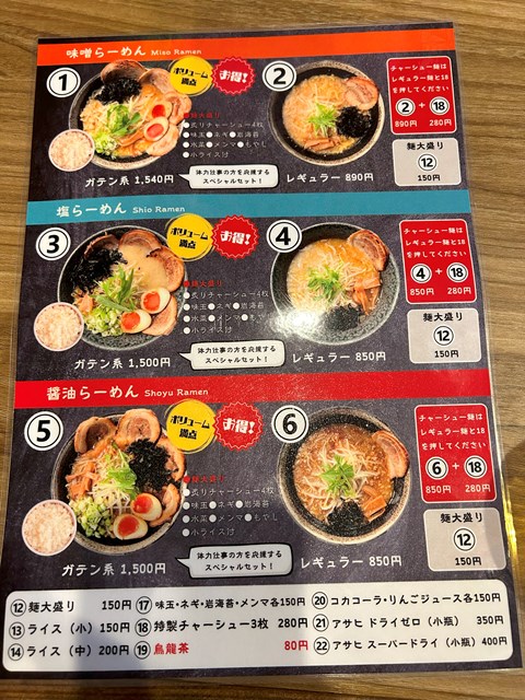 メニュー表を見せて頂きました、今完全にラーメンしか受け付けない口になっています。