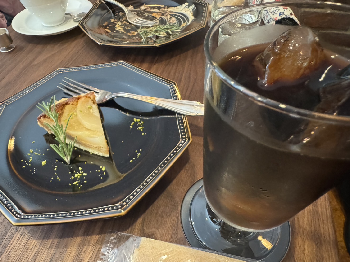 全部おいしそうだったので、迷いましたが季節のタルトとアイスコーヒーを注文!